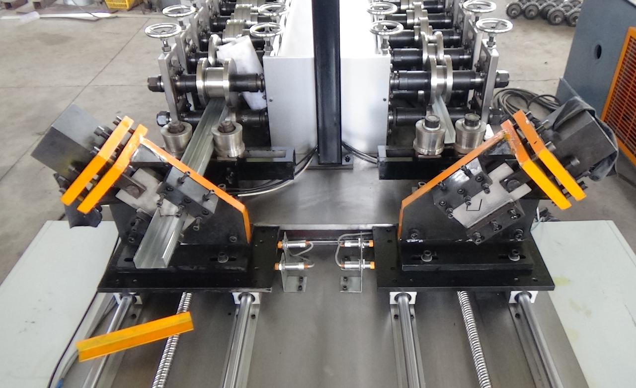 Here we just take drywall as an example, actaully any type light steel keel machine, we could develop it to high speed and fully autoamtic type. The machine works in the speed of 50m/min with servo motor in the shearing part. After shearing, there will be the fully automatic package system to package the finished product. By this method, at most one worker can handle two production line. Take a random drywall drawing profile for example: